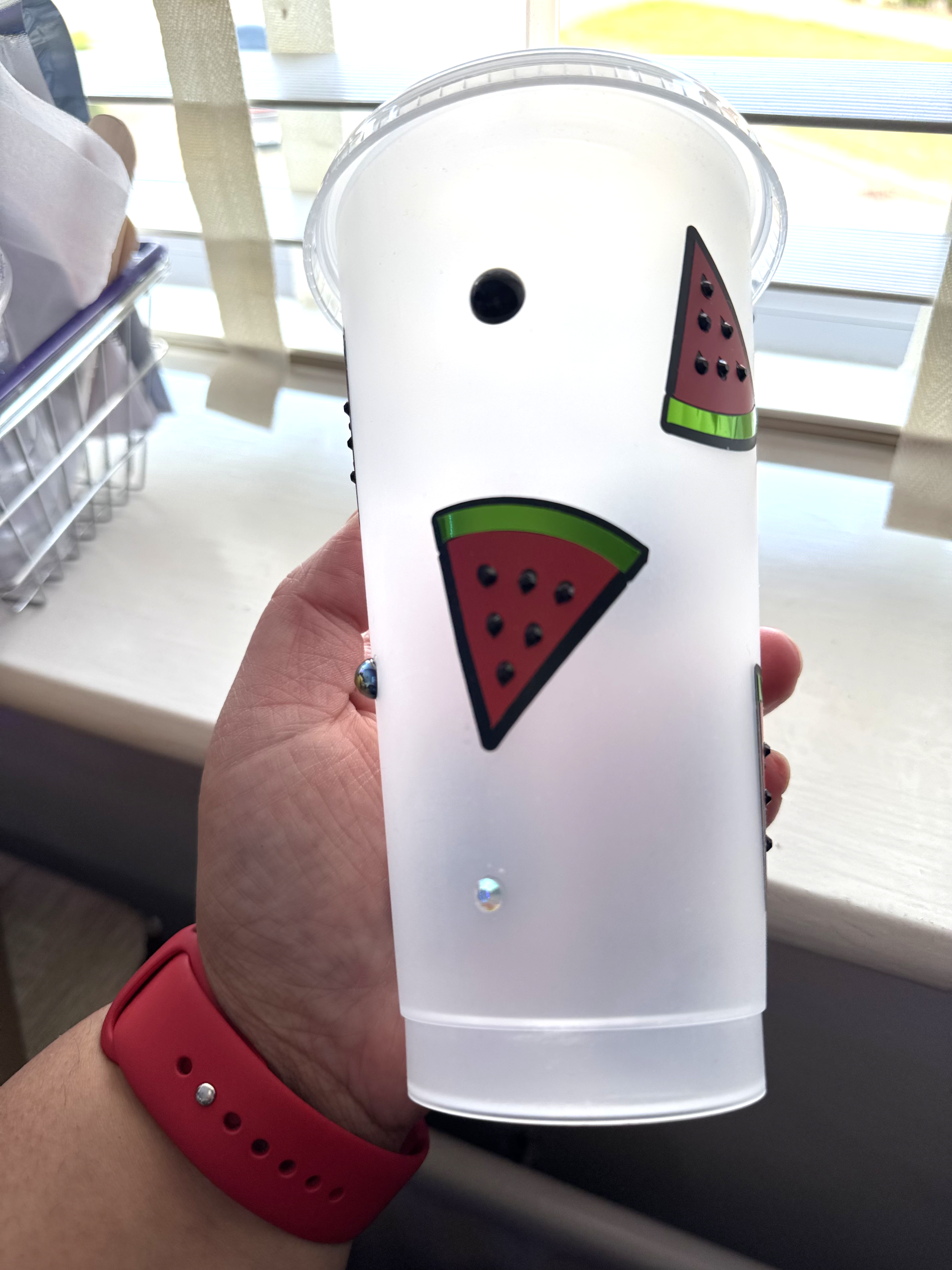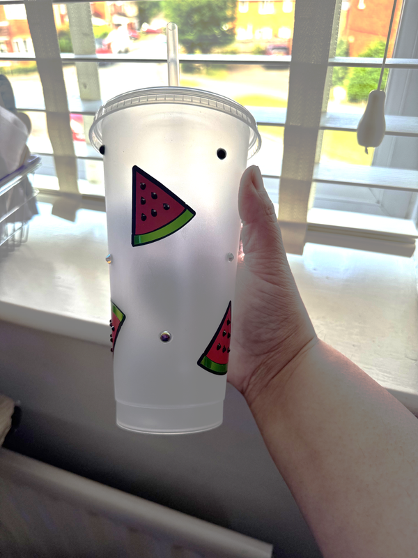Watermelon cold cup with rhinestone detail