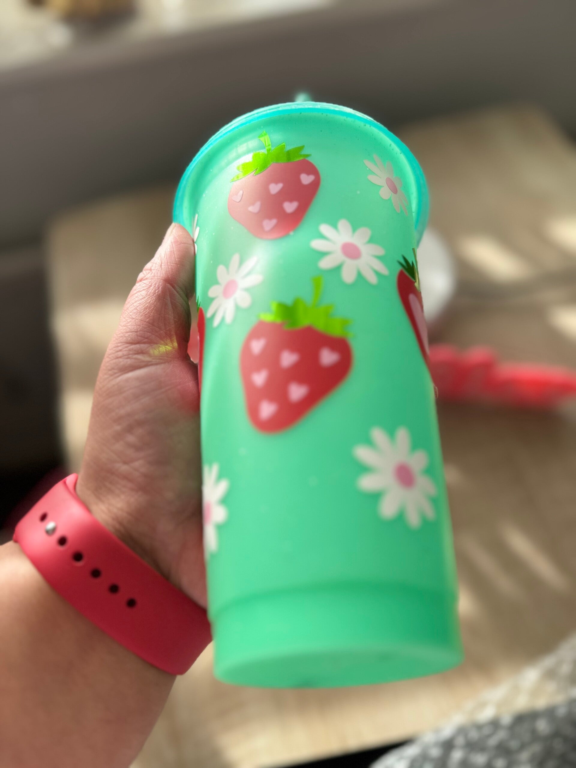 Strawberry Hearts reuseable cold cup