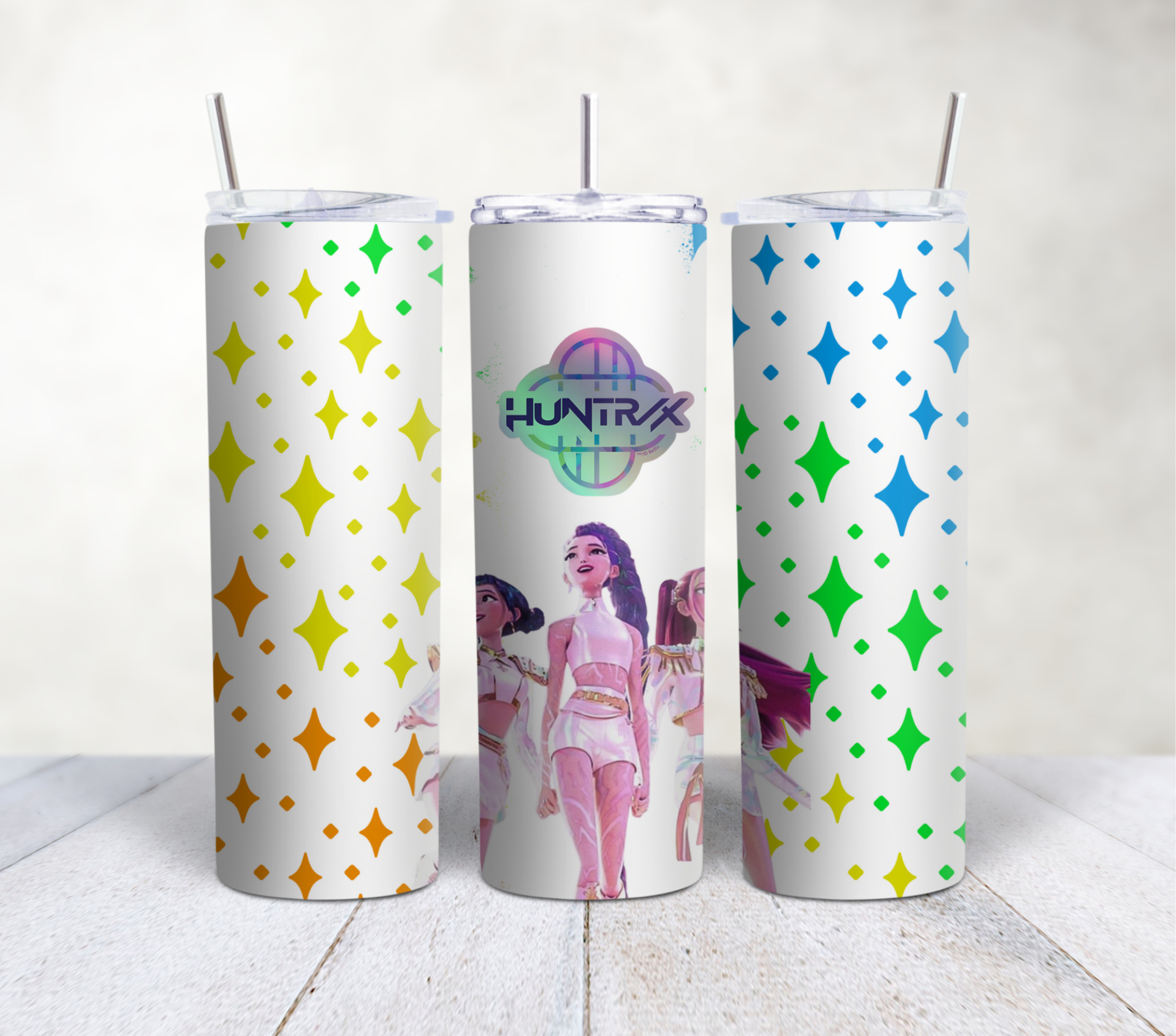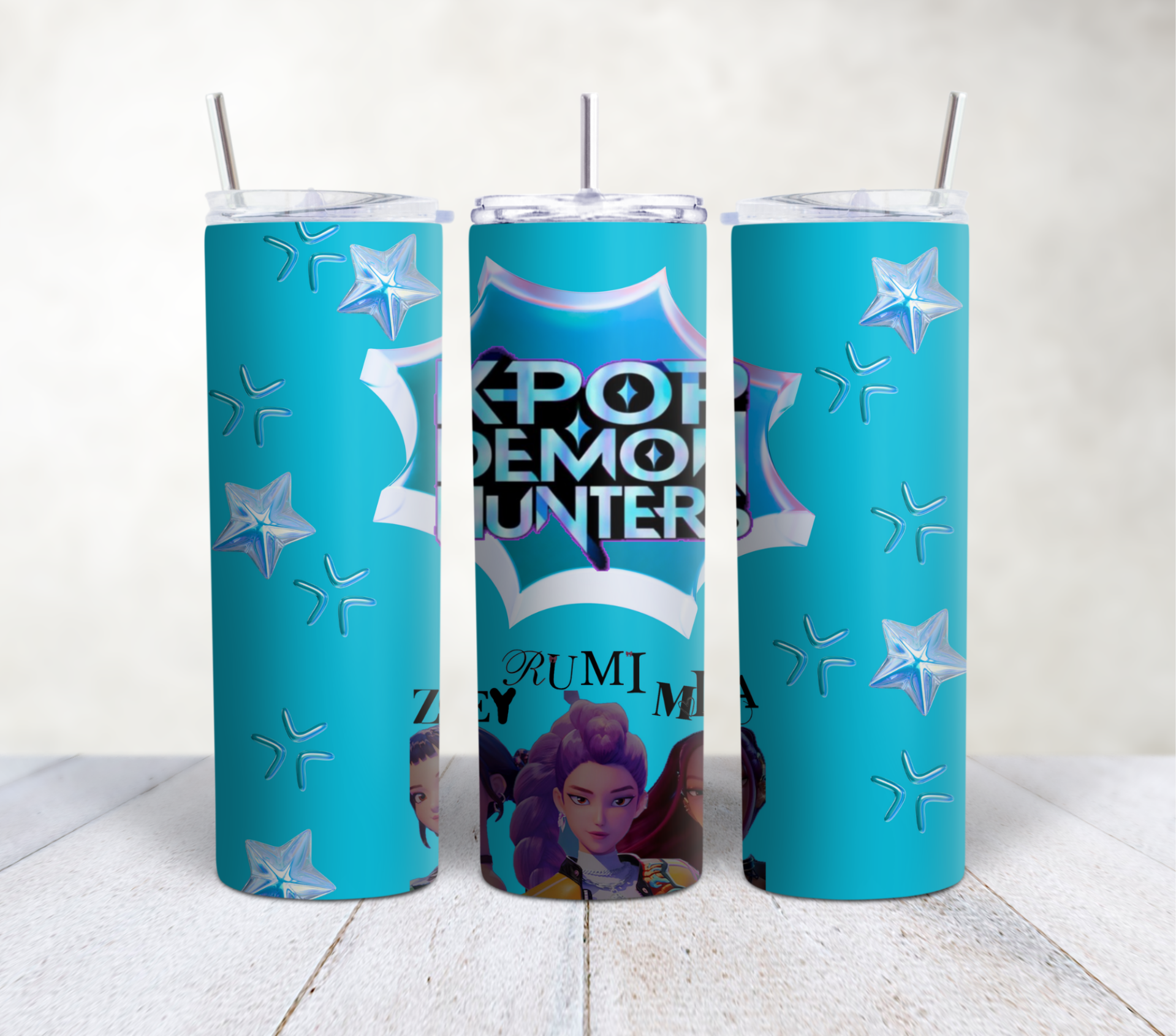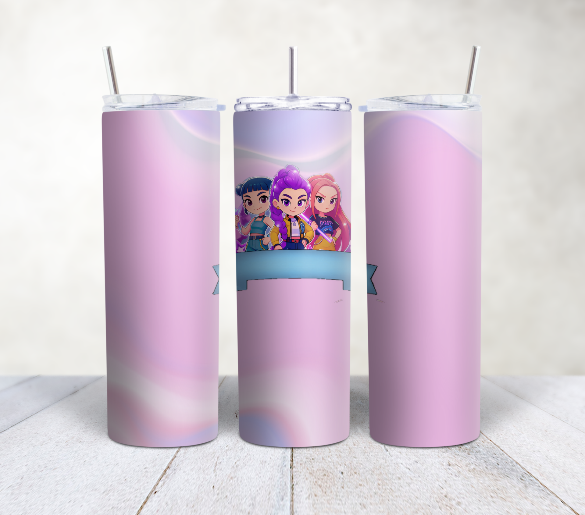 Check out the KPop 20oz tumblers with a variety of designs. Can be personalised with a name. It keeps drinks cold for 8 hours and warm for 12 hours. It comes with a straw and has a sliding lid.