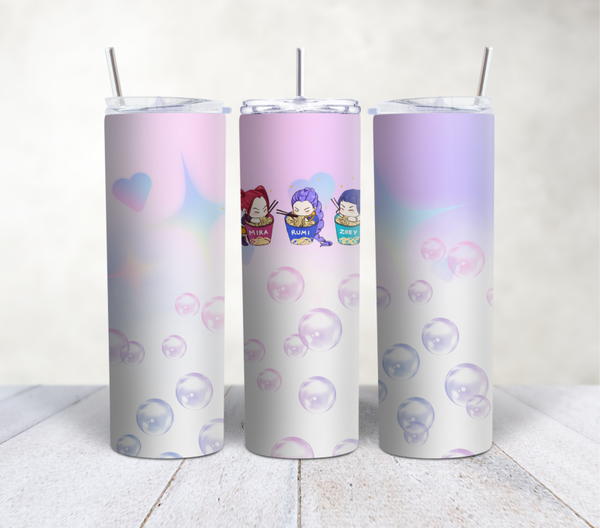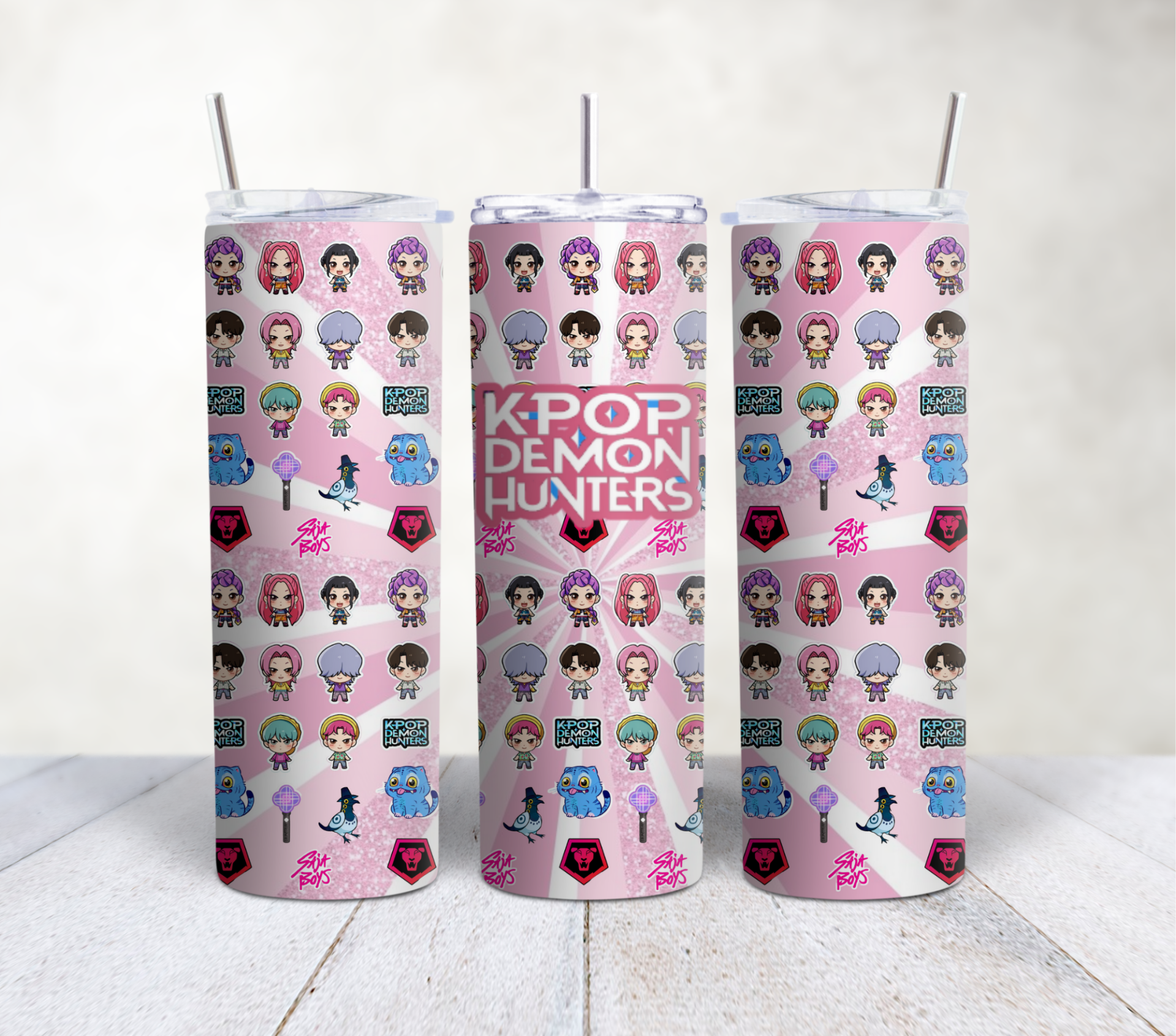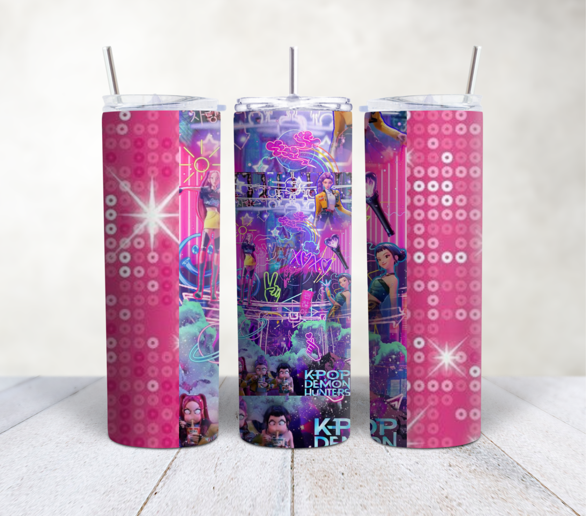 Check out the KPop 20oz tumblers with a variety of designs. Can be personalised with a name. It keeps drinks cold for 8 hours and warm for 12 hours. It comes with a straw and has a sliding lid.