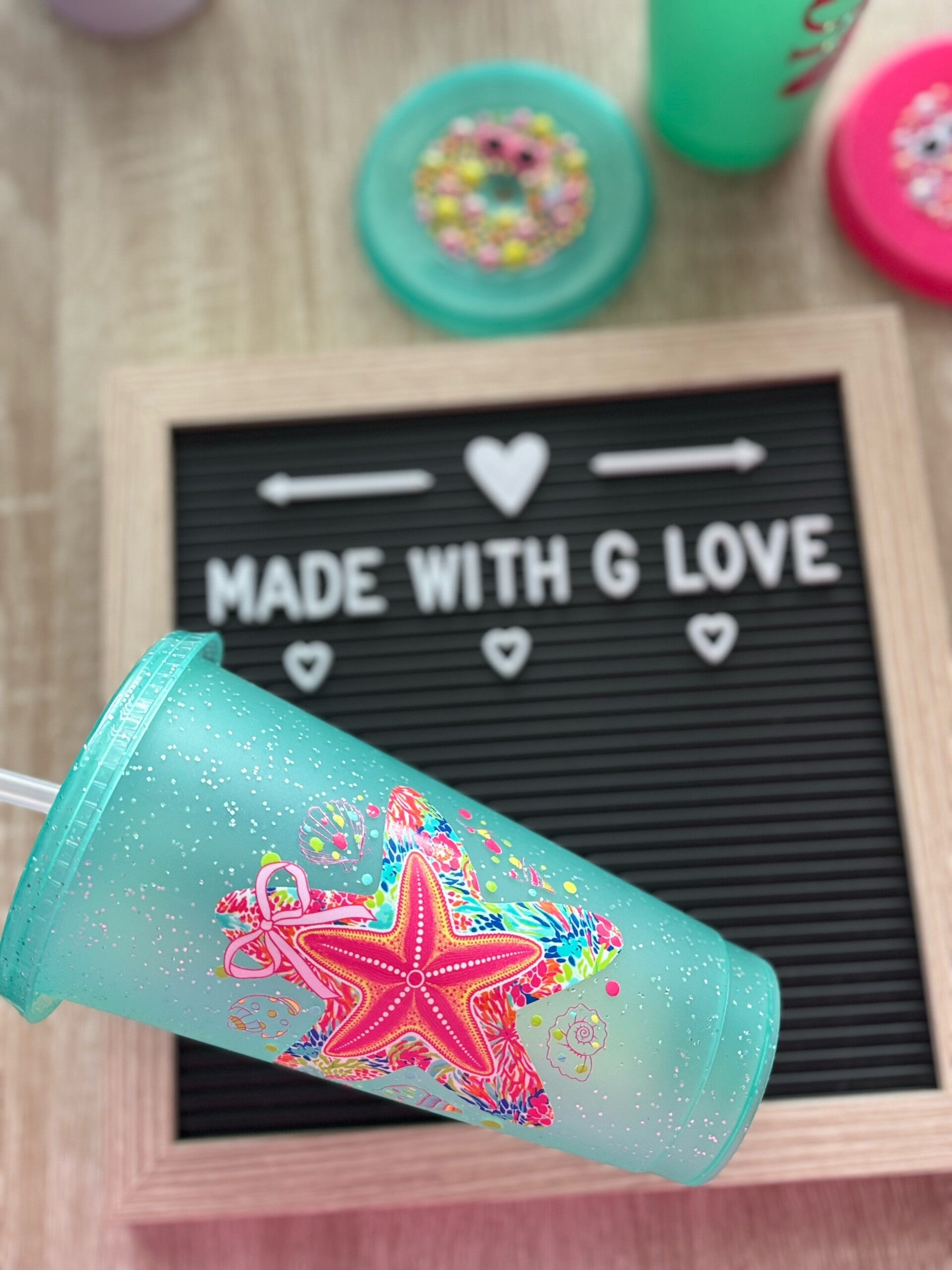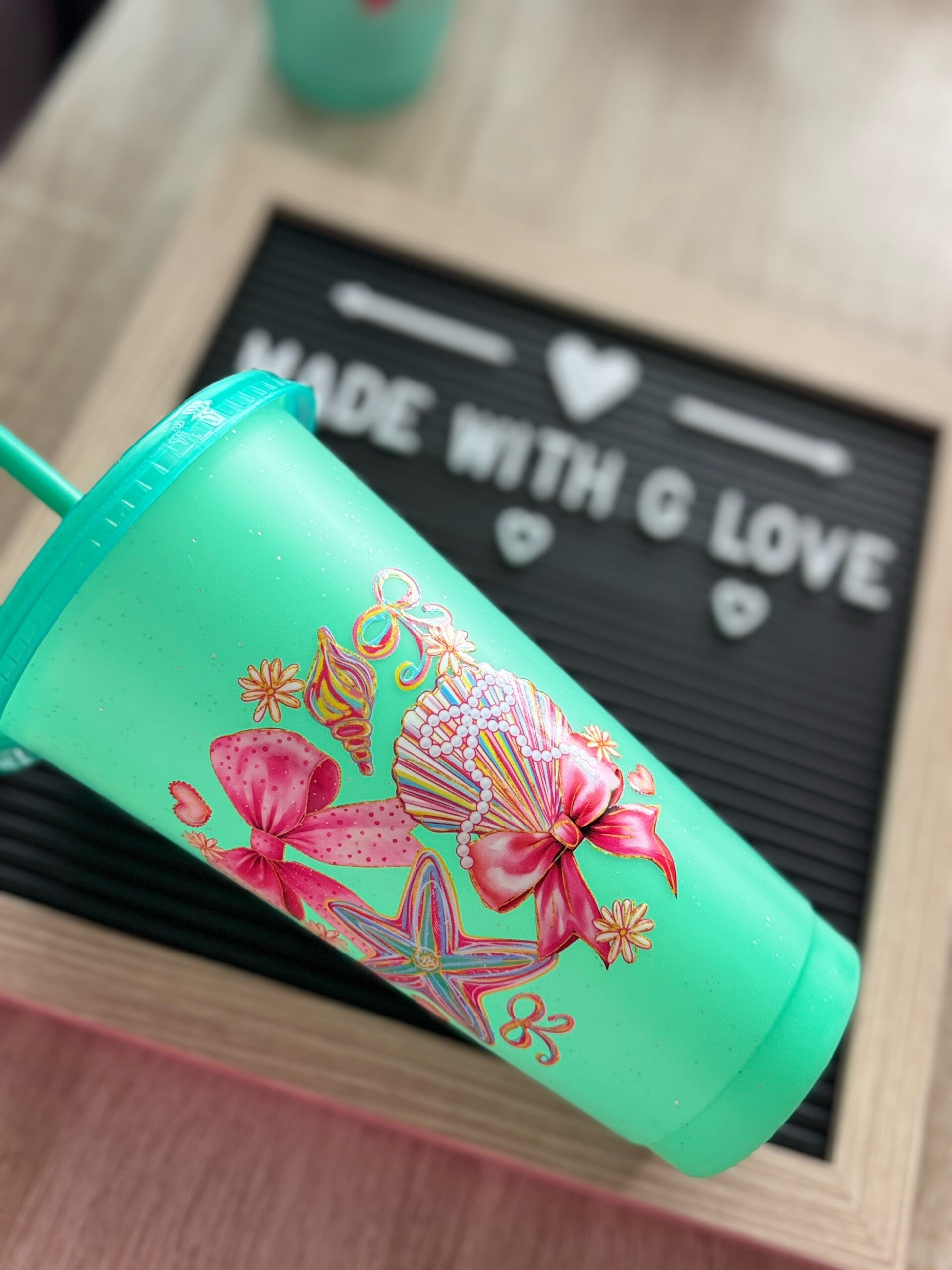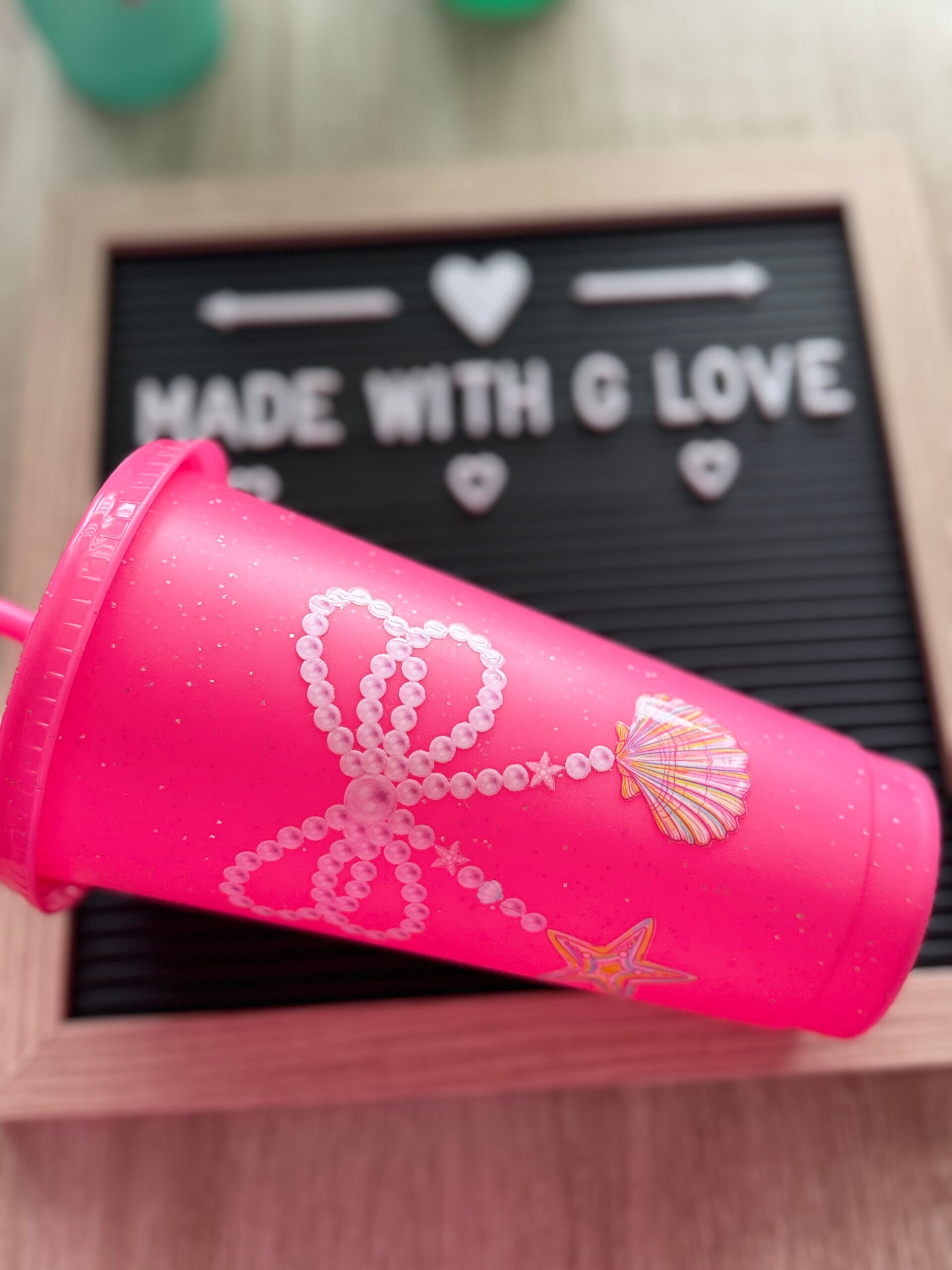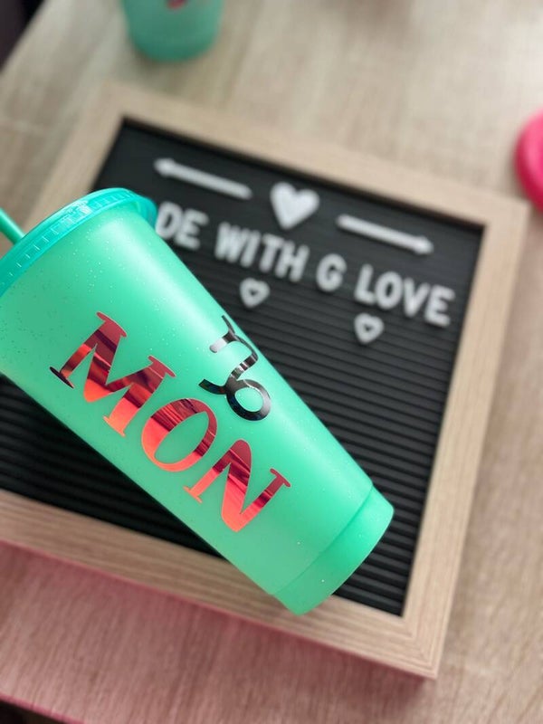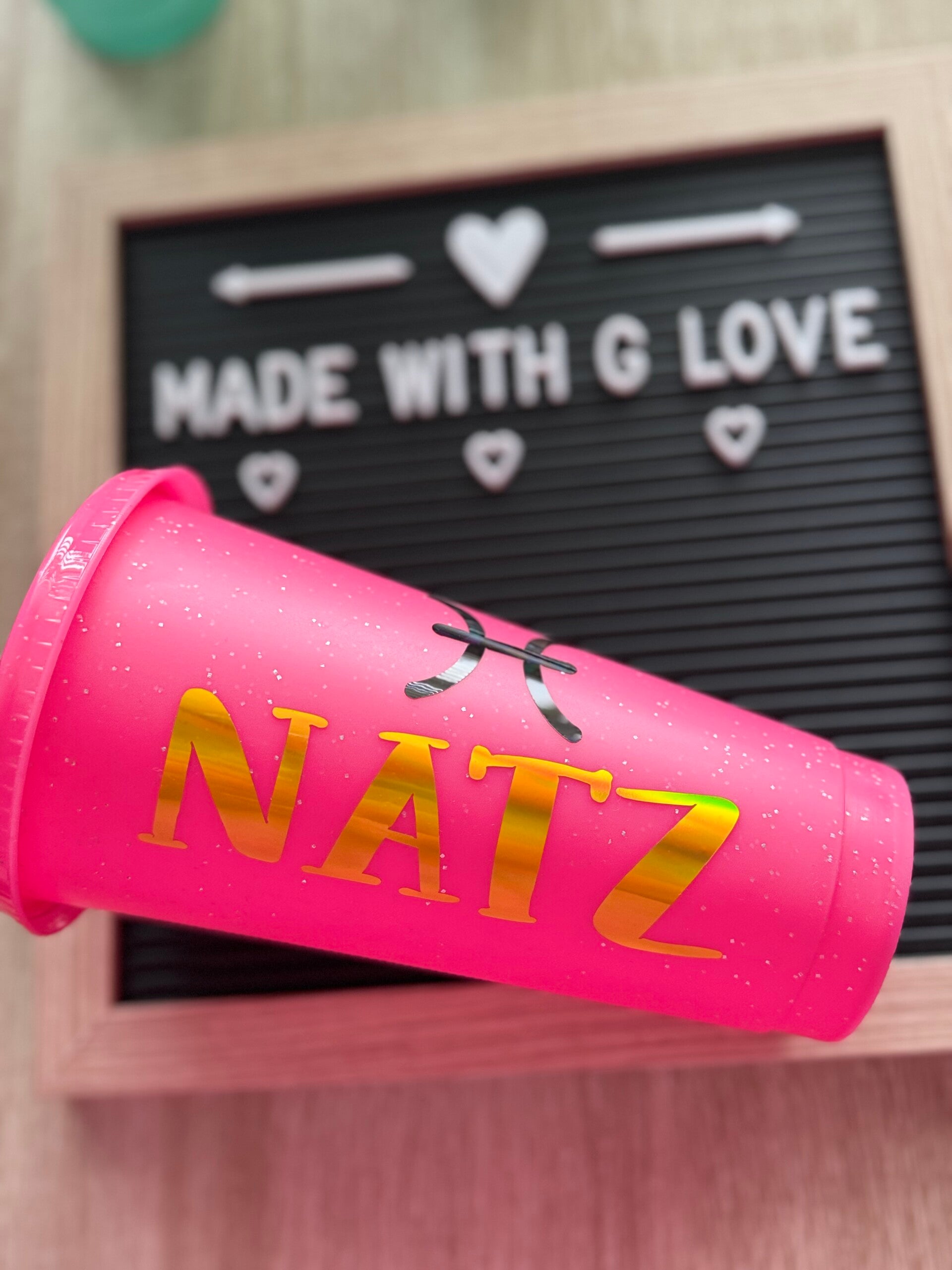 Make it your way! Give me your vision and let's turn it into your personalised cold cup. Made from durable plastic, it comes with a secure lid and reusable straw—ideal for smoothies, your favorite cold drink or a cheeky bevvy on the go. You can even add rheinstone detail!