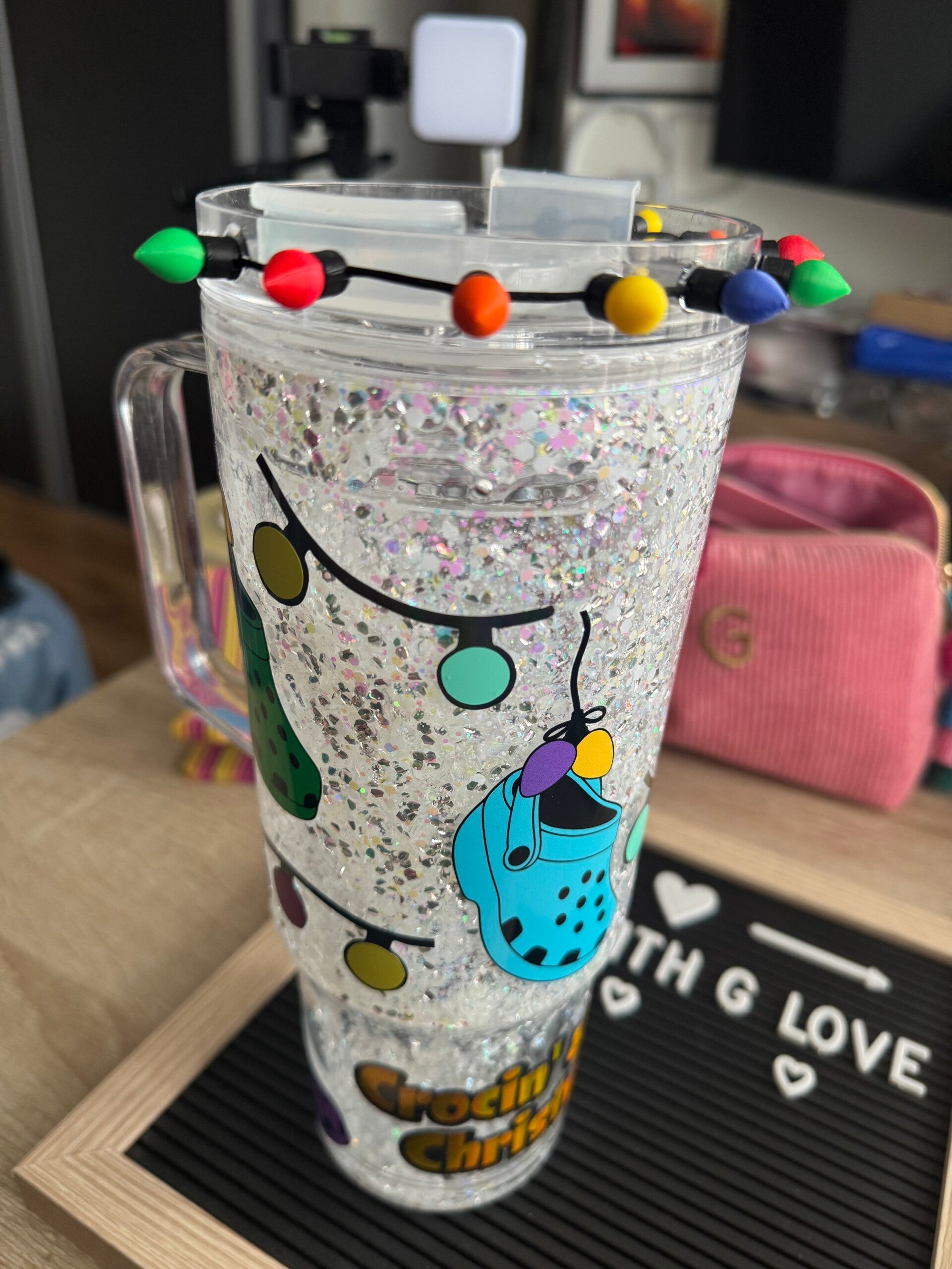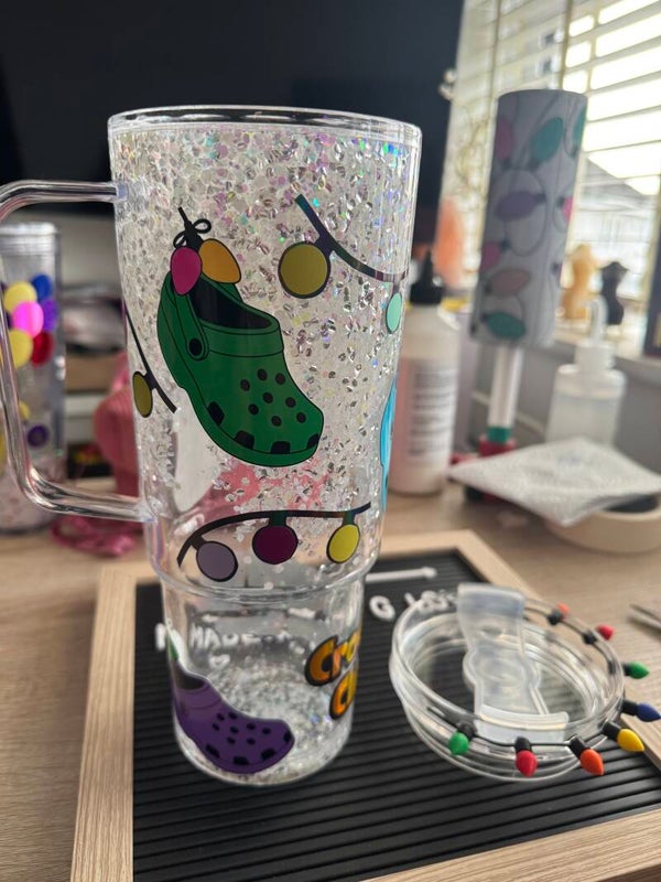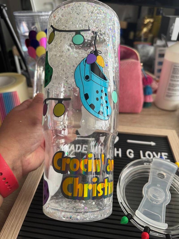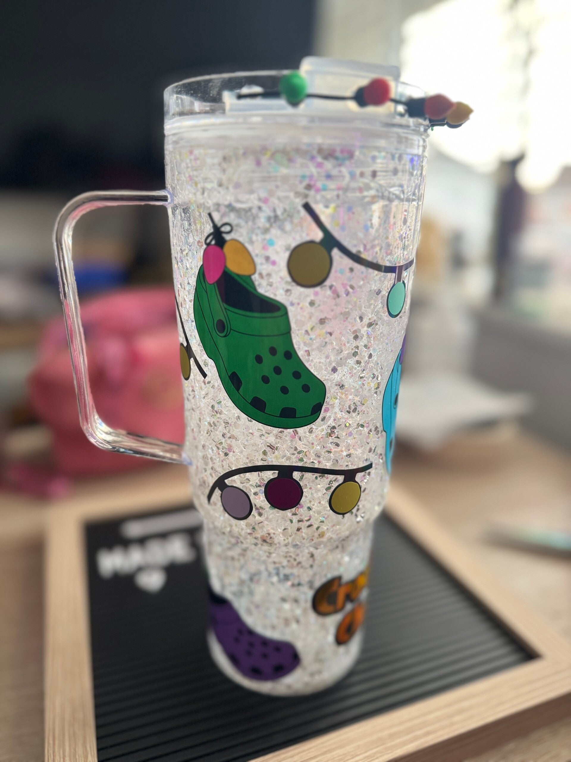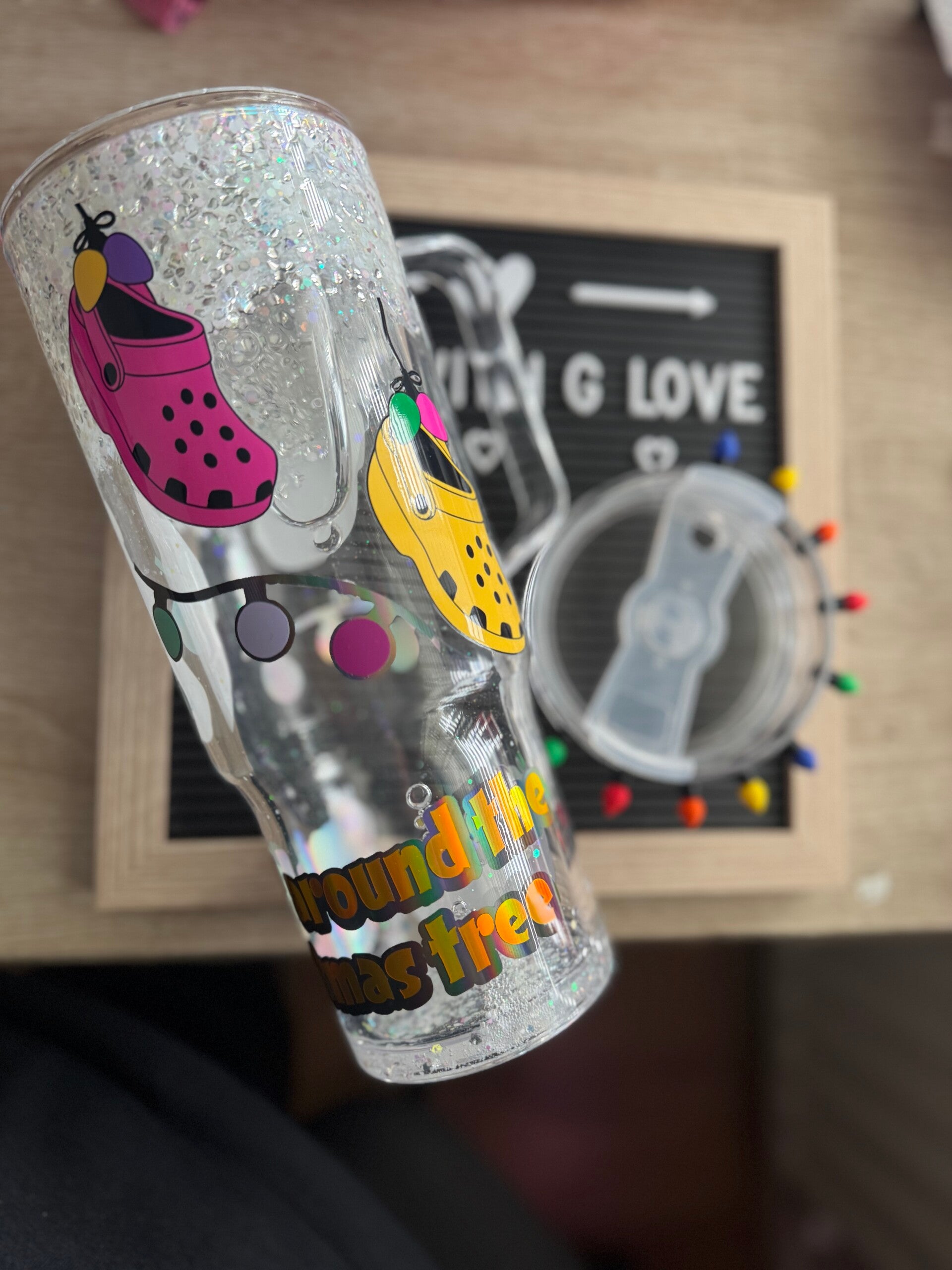Are you crocin' around the Christmas Tree this festive season, or maybe you have someone special in your life who llives for this vibe. This is your perfect cup. Stunning glitter which even glows in the dark. Christmas tree lights around the lid, truly making it special.
