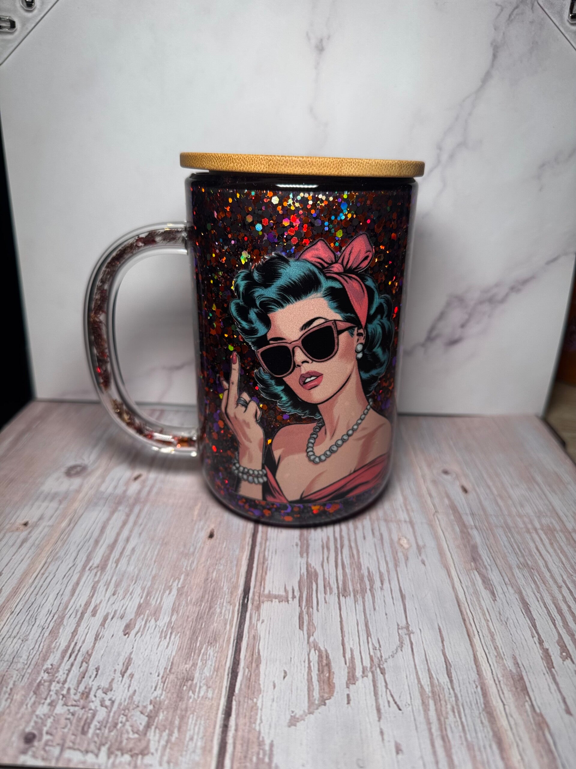 Because sometimes Disney ain't cutting it. Express how you feel and keep the glittery vibes. This is a glass double-walled mug with a 15oz internal capacity.