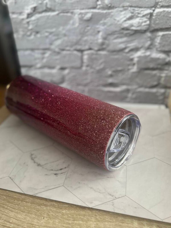 This pink sparkle ombre cup is simple and stunning. This glitter cup has been handmade using various glitters and a gloss finish using resin.