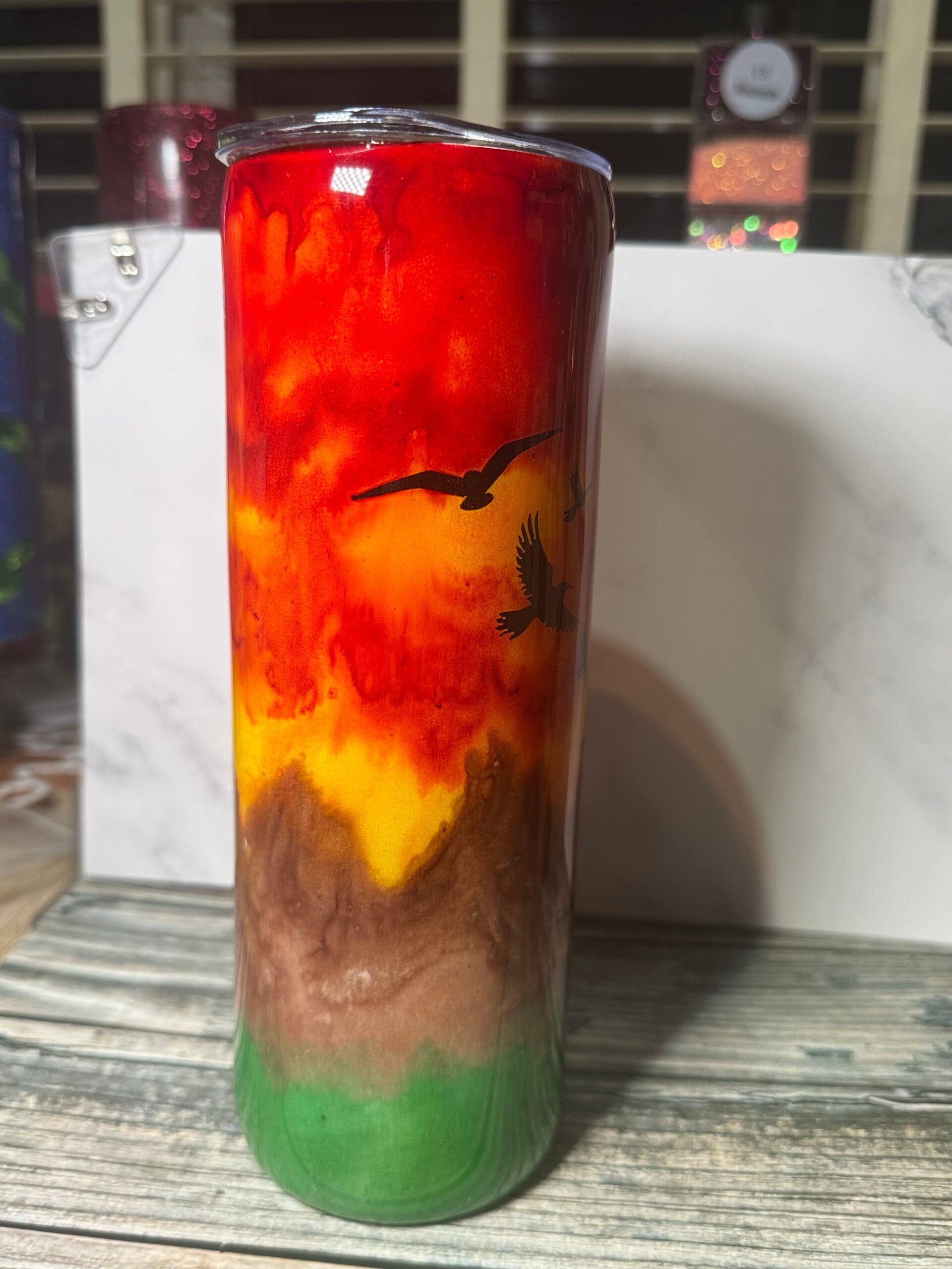 This cup has been handmade using alcohol inks and a gloss finish using resin.