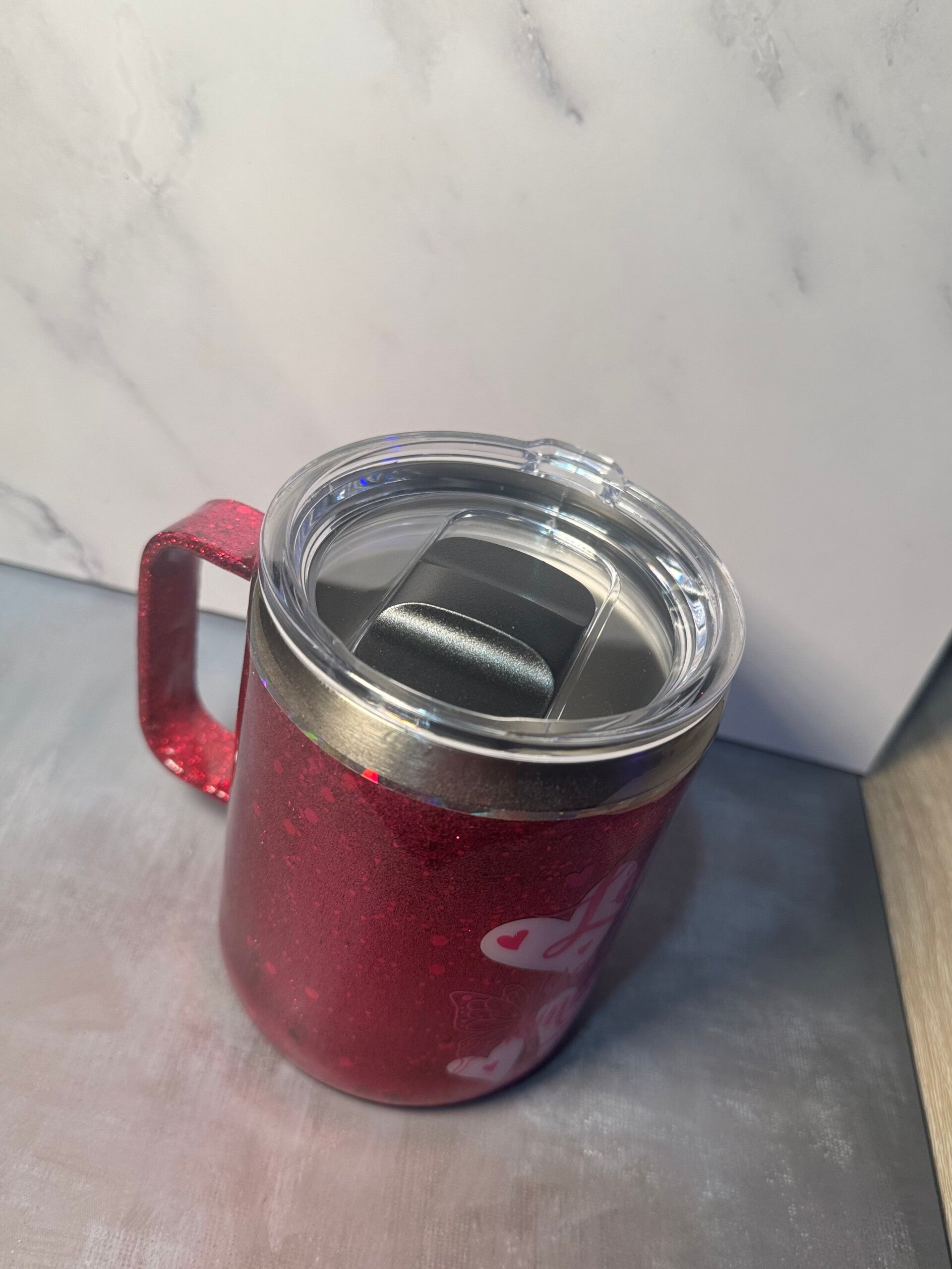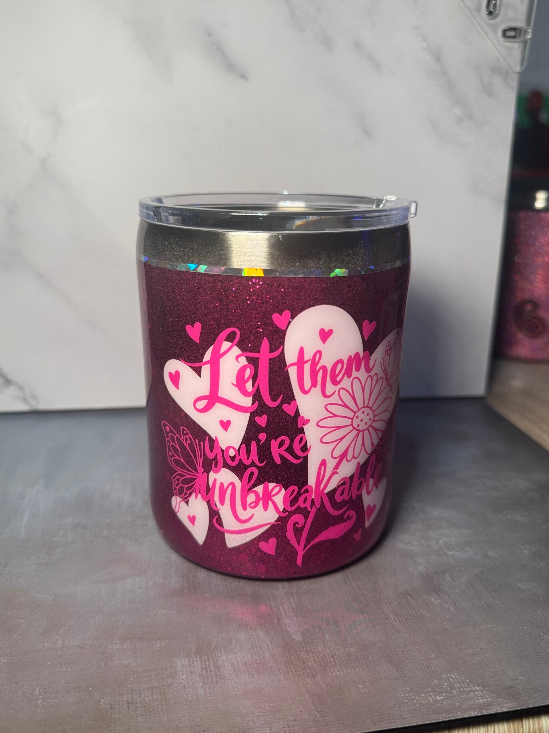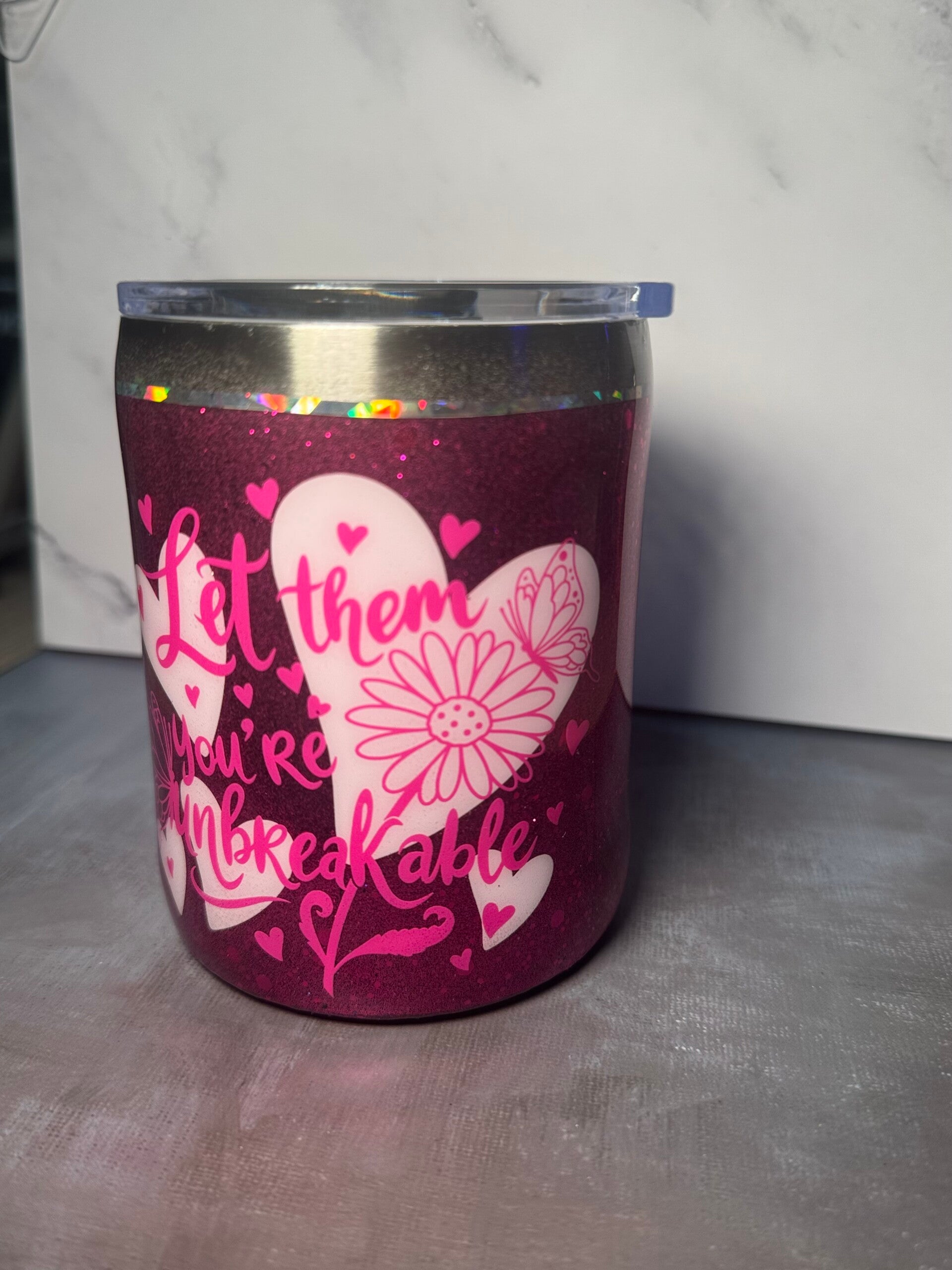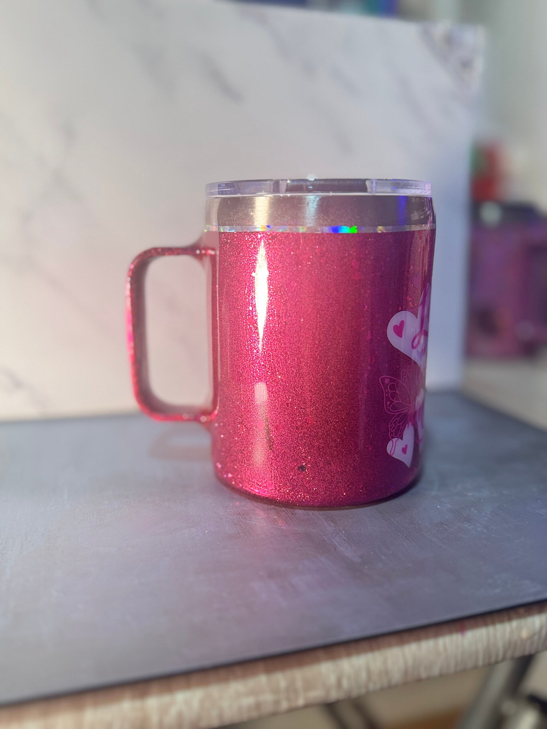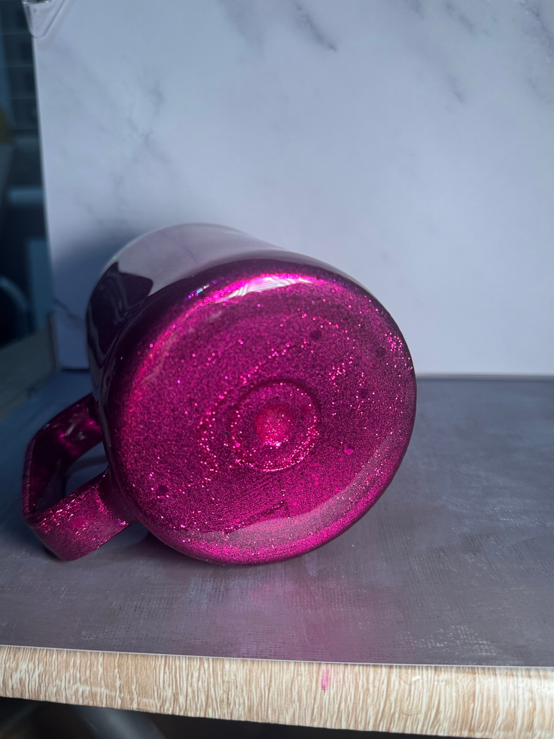 This stunning glitter cup is a one-of-a-kind tumbler. This glitter cup has been handmade using various glitters and a gloss finish using resin.