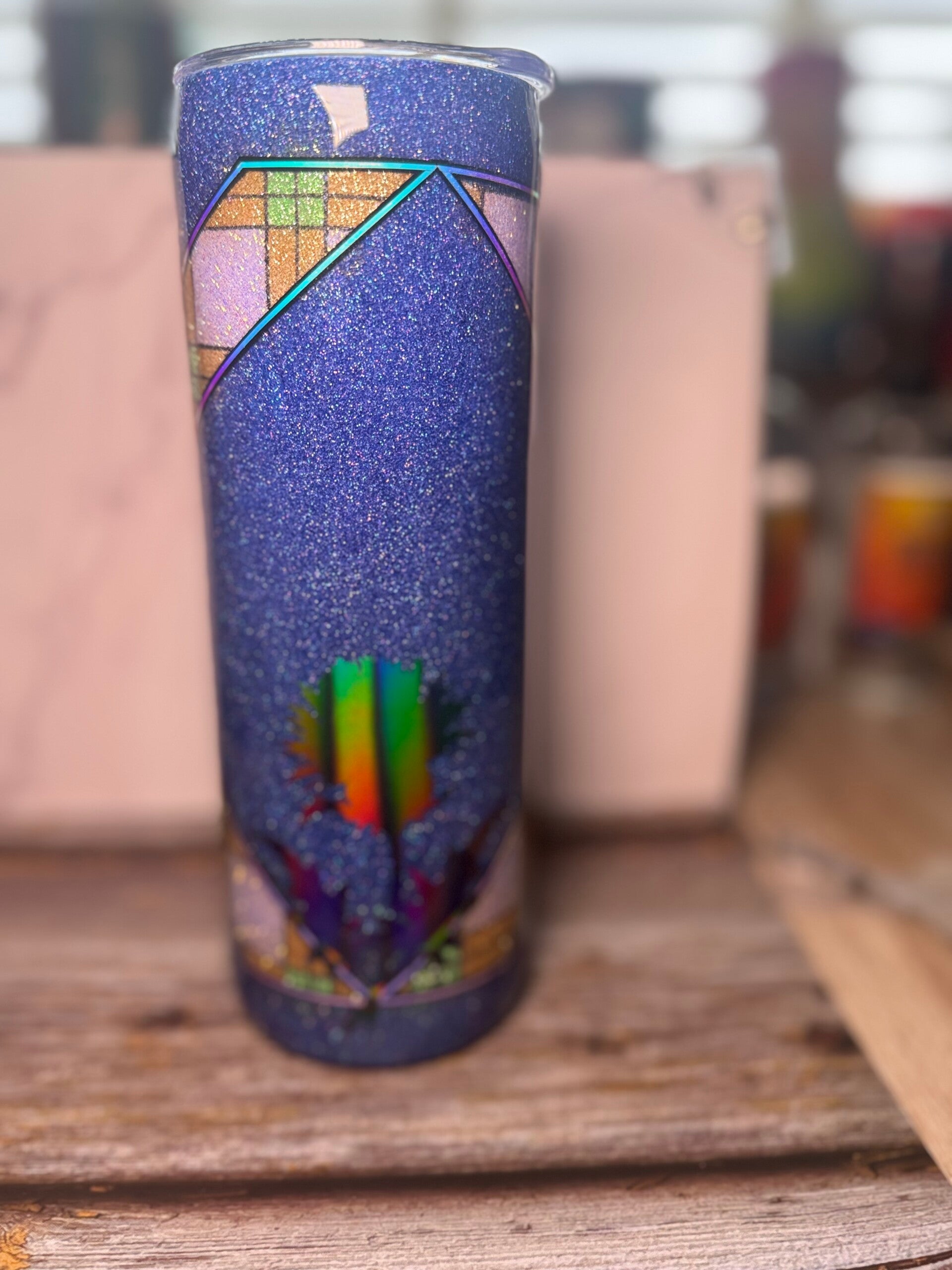 This stunning glitter cup is a one-of-a-kind tumbler. This glitter cup has been handmade using various glitters and a gloss finish using resin.