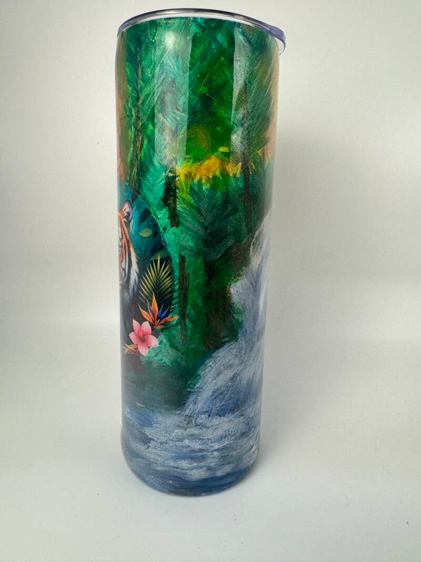 This stunning cup has been handpainted (apart from the Tiger). The tiger is the trees has lots of detail and colours.