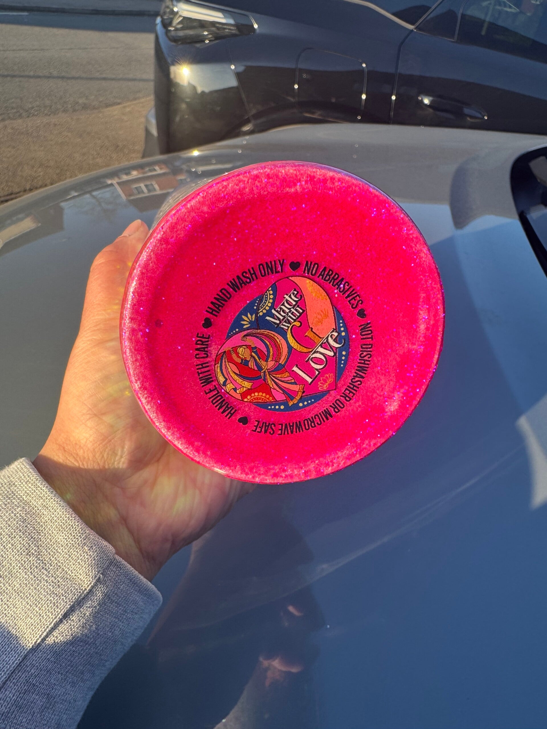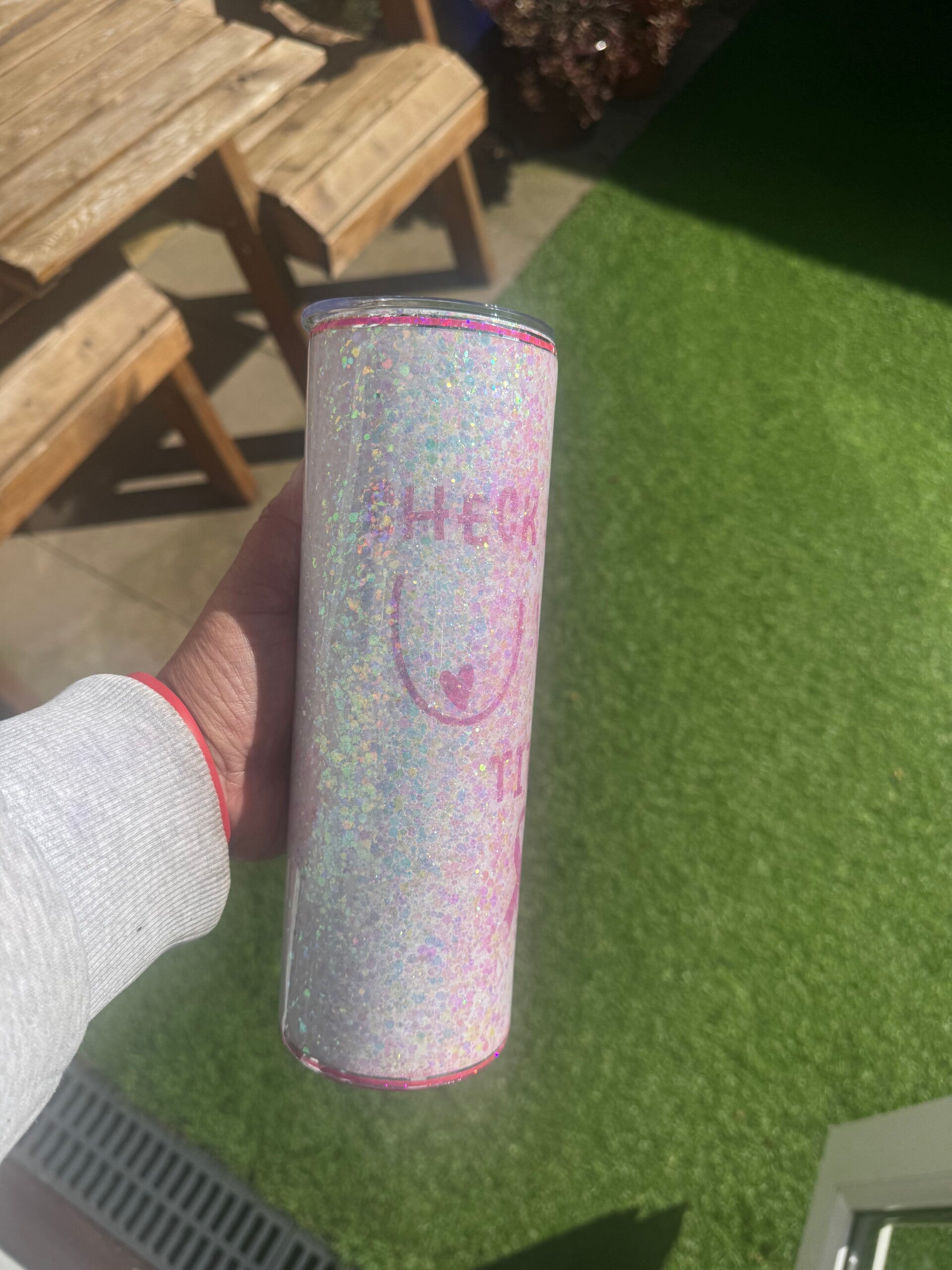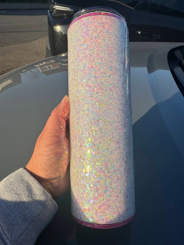 Sparkling, fun and with an important message - check your tits. This stunning glitter cup is a one-of-a-kind tumbler. This glitter cup has been handmade using various glitters and a gloss finish using resin.